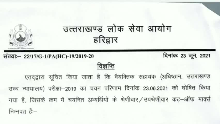 चमोली: वैयक्तिक सहायक परीक्षा की कट ऑफ लिस्ट