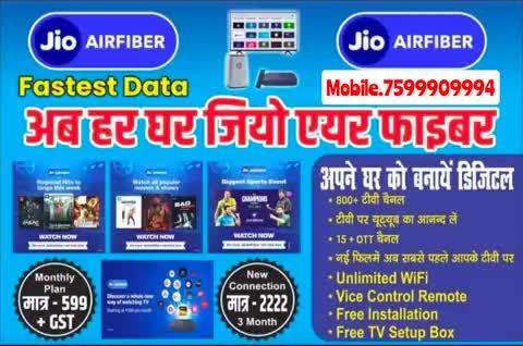 Jio AIRFIBER लगवाने के लिए संपर्क करें। 7599909994