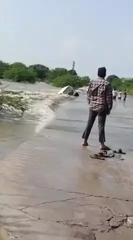 लिलरिया रपट महिंद्रा गाड़ी पानी के बाह में गिरी तुरंत दो लोगों को बाहर निकाल लोगों की सहायता से