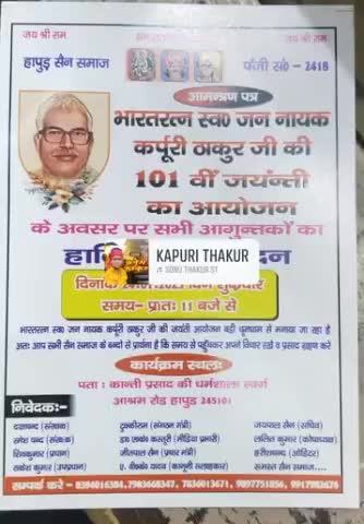 # जननायक कर्पूरी ठाकुर जी को 101 वी जयंती पर समाज के सभी बंधुओं को हार्दिक बधाई