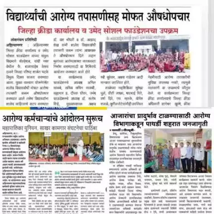अहिल्या नगर जिल्ह्यातील विविध वर्तमानपत्रातील आरोग्य विषयक बातमीपत्र.