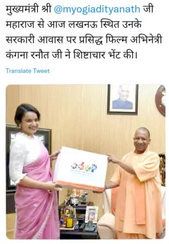 मुख्यमंत्री श्री yogiadityanath जी महाराज से आज लखनऊ स्थित उनके सरकारी आवास पर प्रसिद्ध फिल्म अभिनेत्री कंगना रनौत जी