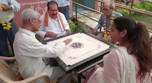अंतर्राष्ट्रीय वृद्धजन दिवस के अवसर पर वरिष्ठ उनके साथ केरम का आनंद ।