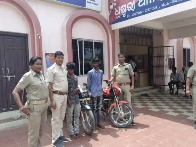 ଧାମନଗର ବ୍ଲକ ମଙ୍ଗଳପୁର ଛକ ରୁ ମଙ୍ଗଳାବର ଭୋର ସମୟରେ ଧୁସୁରୀ ପୋଲିସ ପେଟ୍ରୋଲିଂ କରିବା ବେଳେ ଦୁଇଜଣ ମଟର ସାଇକେଲ ଚୋର କୁ ଧୁଷୁରୀ ପୋଲିସ ଧରିଛନ୍ତି। ସୁଚନା ଥାଉକି ତିହିଡ଼ି ଥାନା ର ବୈକୁଣ୍ଠସାହି ଗ୍ରାମ ର ସିପୁନୁ ନାୟକ ଓ ବିକାଶ ନାୟକ ଦୁଇଟି ଚୋରା ମଟର ସାଇକେଲ ନେଇ ଆଶୁ ଥିବାବେଳେ ଧୁଶୁରୀ ପୋଲିସ ପେଟ୍ରୋଲିଂ କରୁ ଥିବା ବେଳେ ସେମାନଙ୍କୁ କାବୁକରି ଥିଲେ । ଉଭୟ ଙ୍କୁ ଗିରଫ କରି ଆଜି ଦିନ ୨ ଟା ସମୟରେ କୋର୍ଟ ଚାଲାଣ କରା ଯାଇଛି।
