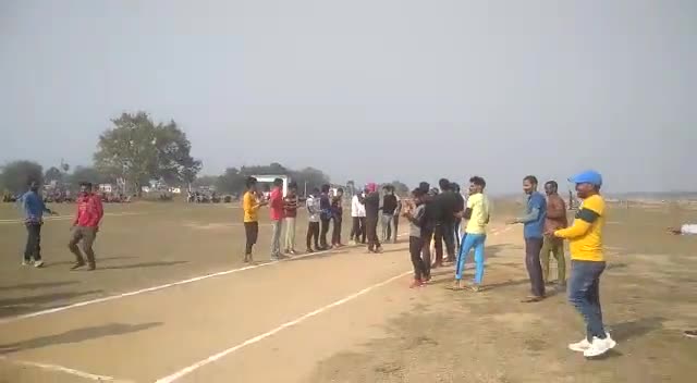 टिहिया दिनारी के खेल मैदान में बैटिंग कर टूर्नामेंट का उद्घाटन करते