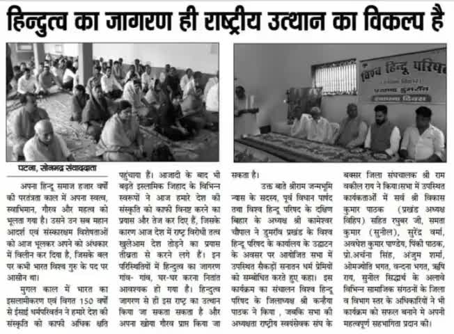 विश्व हिन्दू परिषद के डुमराॅव प्रखंड कार्यालय का उद्घाटन कार्यक्रम ।