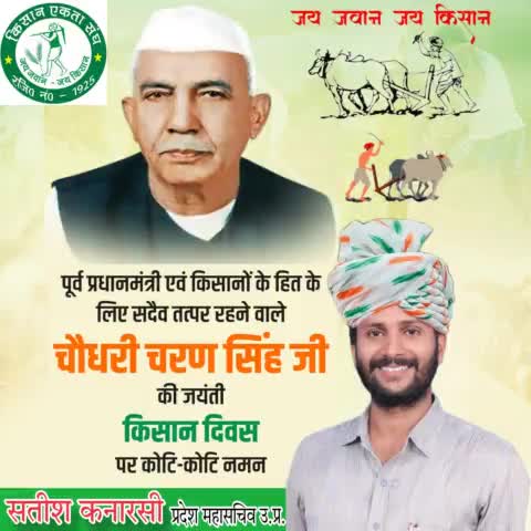 पूर्व प्रधानमंत्री एवं किसानों के हित के लिए सदैव तत्पर रहने वाले चौधरी चरण सिंह जी की जयंती किसान दिवस पर कोटि कोटि नमन ।