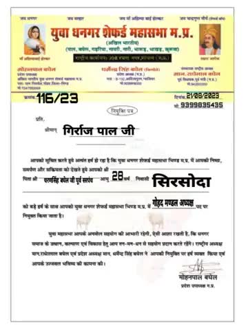 अखिल भारतीय धनगर शेफर्ड महासभा गोहद मे गिर्राज पाल जी (सिरसोदा)को गोहद मण्डल अध्यक्ष बनाए जाने पर हार्दिक बधाई शुभकामनाये