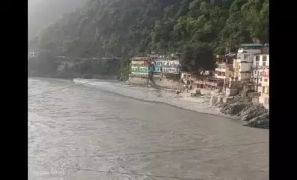 रुद्रप्रयाग: रुद्रप्रयाग में अलकनंदा नदी अपने बहाव क्षेत्र में बहने लगी, घाट मलबे से दबे
