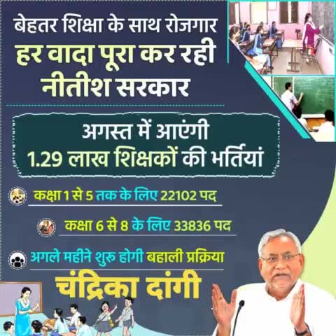 बेहतर #शिक्षा के साथ #रोजगार , हर वादा पूरा कर रही सरकार… अगस्त में आएंगी 1.29 लाख शिक्षकों की भर्तियां। #TeachersRecruitment #Education #Employment #Bihar #NitishKumar