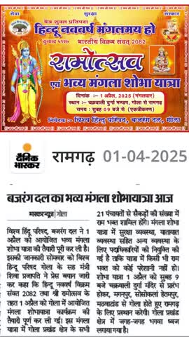 आज गोला में बजरंग दल के द्वारा भव्य मंगल शोभायात्रा 9:00 बजे निकाला जाएगा। #danishpatel27