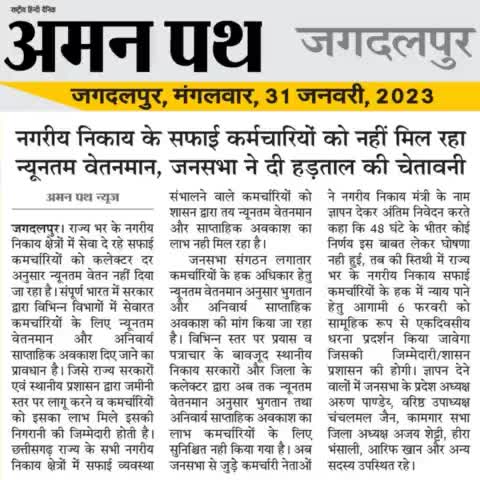 नगरीय निकायों में सफ़ाई कर्मचारियों को न्यूनतम वेतन तक नही मिल रही, न्याय पाने करेंगे राज्यव्यापी हड़ताल - जनसभा
