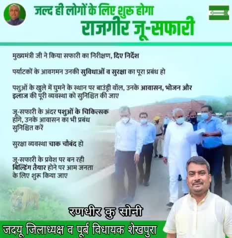 माननीय मुख्यमंत्री Nitish Kumar जी की परिकल्पना से राजगीर में बन रहा जू-सफारी जल्द ही पर्यटकों के लिए खुल जाएगा।