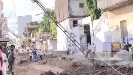 યાત્રાધામ વીરપુરમાં ચાર જેટલા વીજપોલ ધરસાય થયાં, રેલવે સ્ટેશન રોડ ના ખોદકામ દરમિયાન વિજપોલ ધરસાય થયાં, રેલવે સ્ટેશન રોડ નવો બનાવવા માટે ખોદકામ ની ચાલી રહી છે કામગીરી, વિજપોલ ધરસાય થવાની ઘટનામાં કોઈ જાન હાનિ નહિ, વિજપોલ ધરસાય થતા PGVCL ને કરાય જાણ,