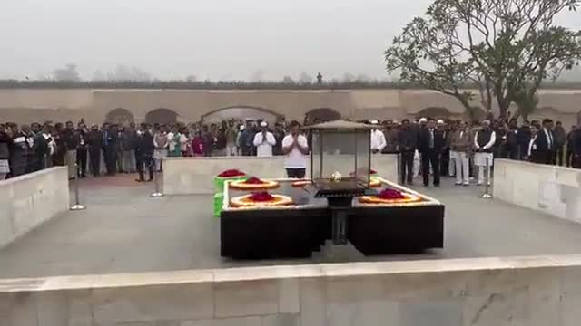 श्री राहुल गांधी जी आज #BharatJodoYatra के समय राष्ट्रपिता बापूजी को सादर श्रद्धा सुमन अर्पित करते हुए राजघाट पर।