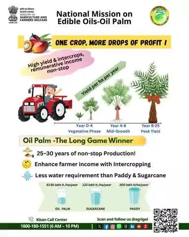 Plant oil palm today, reap prosperity for decades! High yield, assured returns & sustainable farming – more profit drops! 🌴💧 #OilPalm #NMEO_OP
