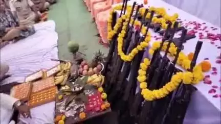 रामपुर बाघेलान:- जिले के रामपुर बाघेलान थाना परिसर में गुरुवार दोपहर 1 बजे दशहरे के पर्व पर पारंपरिक शस्त्र पूजा का आयोजन किया गया। इस अवसर पर विधायक विक्रम सिंह व थाना प्रभारी संदीप चतुर्वेदी ने पुलिस बल के साथ मिलकर शस्त्र पूजन किया और सभी क्षेत्रवासियों को विजयादशमी की हार्दिक शुभकामनाएं दीं। थाना प्रभारी संदीप चतुर्वेदी ने बताया