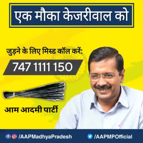 दिल्ली जैसा परिवर्तन मध्यप्रदेश में लाने के लिए एक मौका केजरीवाल को। मिस्ड कॉल करें: 747 1111 150