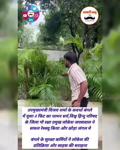 उपमुख्यमंत्री विजय शर्मा के कवर्धा बंगले में घुसा 8 फिट धामन सर्प,VHP के लोकेश ने किया सफल रेस्क्यू और छोड़ा जंगल मे