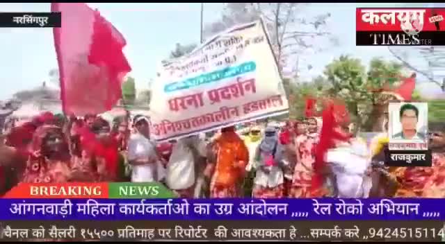 इंदौर: **नरसिंगपुर से बड़ी खबर आ रही हे ,* *Kalyug,Times,News,network** , 🎯आंगनवाड़ी महिला कार्यकर्ताओ का उग्र ,,,,,रेल रोको