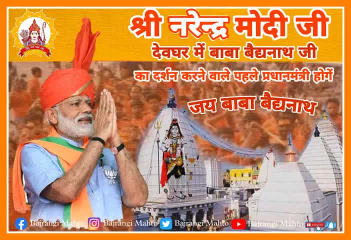श्री @narendramodi जी देवघर में बाबा बैद्यनाथ जी का दर्शन करने वाले पहले प्रधानमंत्री होगें। @ignorestatus के कार्यक्रम को भव्य व सुंदर बनाने में सहयोग करें। #जय_बाबा_बैद्यनाथ https://t.co/sokD3dk1dN
