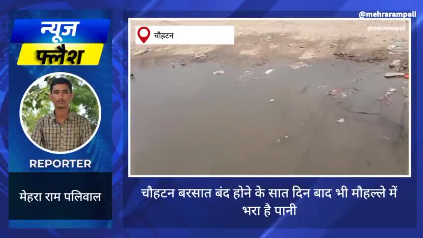 चौहटन में बरसात को सात दिन बाद भी मौहल्ले में भरा है पानी