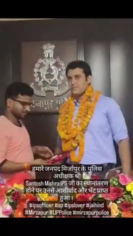 हमारे जनपद मिर्जापुर के पुलिस अधीक्षक श्री IPSसन्तोष मिश्रा जी का स्थानांतरण होने पर उनसे आशीर्वाद और भेंट प्राप्त हुआ
