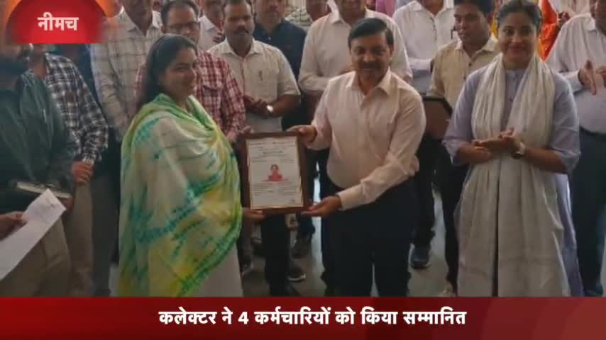 नीमच: नीमच कलेक्टर कार्यालय में कलेक्टर ने 4 कर्मचारियों को बेस्ट एम्पलाई ऑफ द मंथ के पुरस्कार से सम्मानित किया।