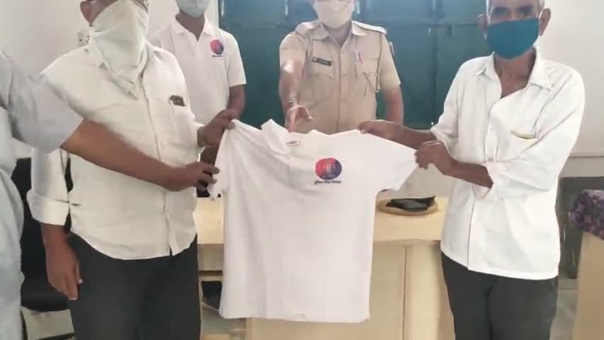 रानी: रानी में समाज सेवी उदाराम चौधरी ने पुलिस मित्र संगठन के सदस्यों में टीशर्ट, सैनिटाइजर व मास्क का किया वितरण