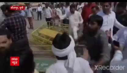 प्रियंका गांधी की गिरफ्तारी के विरोध में सड़क पर उतरे कांग्रेसी कार्यकर्ता।