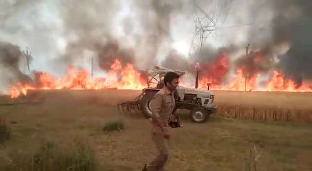 औरैया: सैकड़ों बीघा फसल जलकर राख एक घंटा देर से पहुंची दमकल गाड़ियां