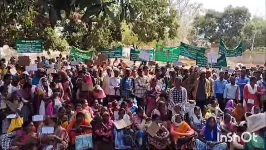 आनंदपुर: प्रखंड परिसर में भूमि बैंक रद्द करने की मांग को लेकर ग्रामीणों ने धरना प्रदर्शन किया