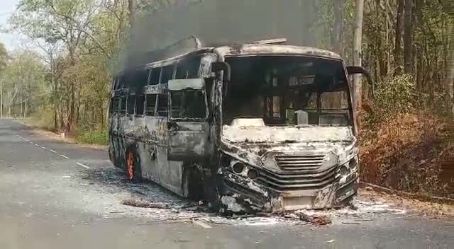 #बारसूर पल्ली मार्ग पर नक्सलियों ने की बस में आगजनी