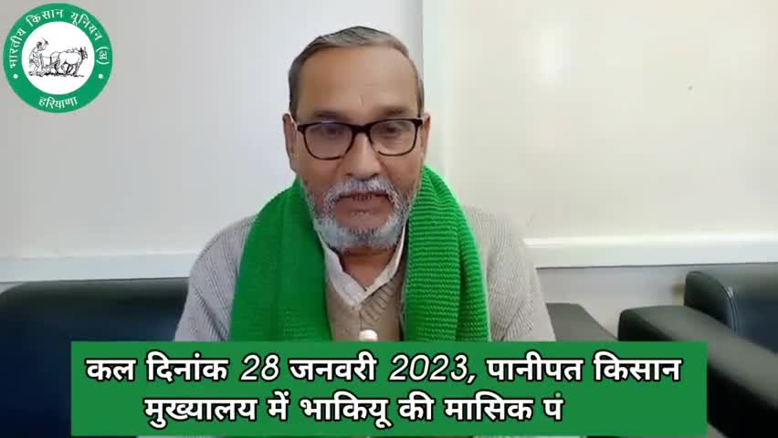 🙏 किसान भाइयों🙏 जय किसान, भारतीय किसान यूनियन के सभी पदाधिकारियों व कार्यकर्ताओं से निवेदन है कि कल दिनांक 28 जनवरी 2023 को सुबह 10:30 बजे पानीपत प्रदेश मुख्यालय में मासिक किसान पंचायत होगी।