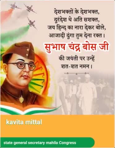 भारत की सपूत स्वतंत्रता संग्राम के महानायक नेता सुभाष चंद्र बोस की जयंती पर शत-शत नमन