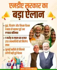 सामाजिक सुरक्षा पेंशन योजना के तहत विधवा महिलाओं, वृद्धजनों और दिव्यांगजनों को अब हर महीने 400 रु॰ की जगह 1100 रु॰ पेंशन मिलेगी। सभी लाभार्थियों को जुलाई महीने से पेंशन बढ़ी हुई दर पर मिलेगी।