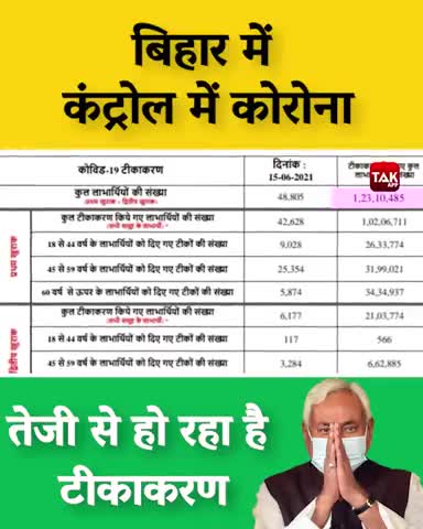 मा. मुख्यमंत्री श्री @nitishkumar जी के कुशल नेतृत्व और बिहारवासियों के सहयोग से बिहार जीत रहा है कोरोना से जंग...