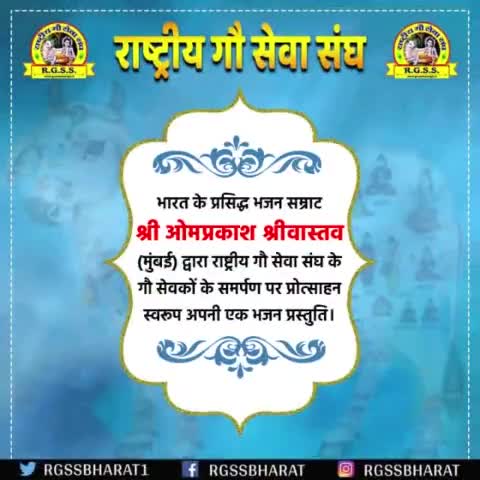 प्रसिद्ध भजन सम्राट श्री ओमप्रकाश श्रीवास्तव द्वारा राष्ट्रीय गौ सेवा संघ के समर्पण पर अपनी एक भजन प्रस्तुति की है