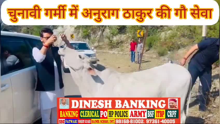 चुनावी माहौल के बीच गौ सेवा करते हुए दिखाई दिए केंद्रीय मंत्री अनुराग ठाकुर