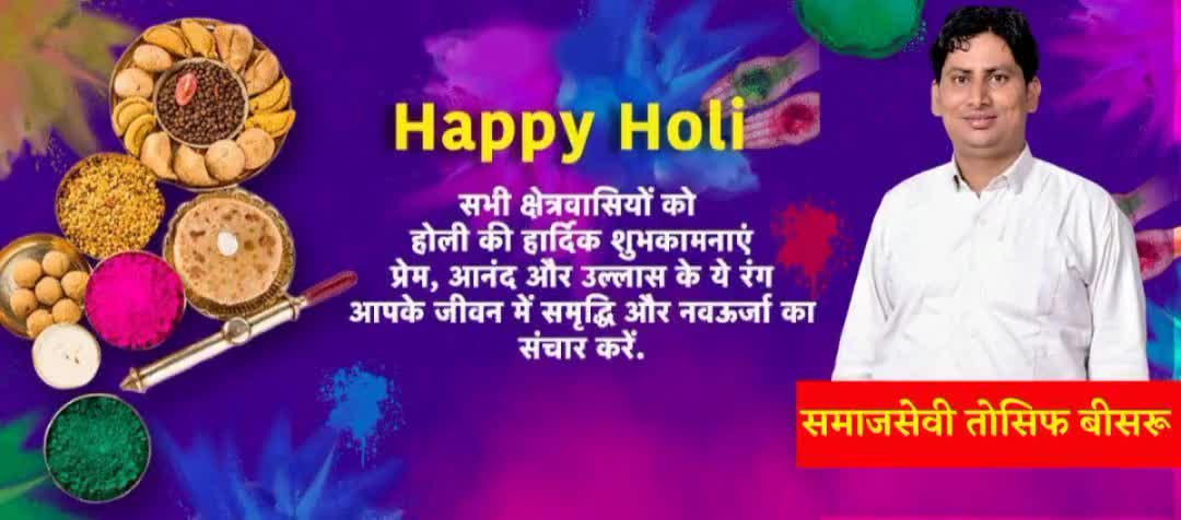 सभी देशवासियों को होली पर्व की हार्दिक बधाई तौसीफ खान बीसरू