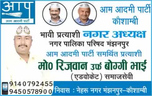 नगर पालिका मंझनपुर कौशाम्बी के एकमात्र आप का बेटा समाजसेवी मोहम्मद रिज़वान उर्फ बोग्गी भाई एडवोकेट एक मात्र समाजसेवा आम आदमी