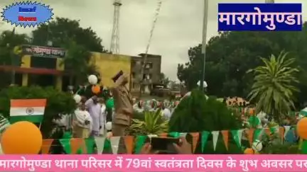 मारगोमुंडा: मारगोमुण्डा थाना में थानेदार तरुण बाखला ने ध्वजारोहण कर दिया सलामी।