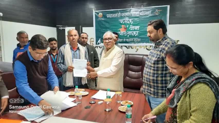 जिला स्तर पर लघु सचिवालय नारनौल में प्रधानमंत्री फसल बीमा योजना के प्रावधानों के बारे में किसानों को जागरूक करने और फसल बीमा पॉलिसी की डिलीवरी सुनिश्चित करने के उद्देश्य से मेरी पॉलिसी मेरे हाथ के तहत किसानों को दस्तावेज वितरित किए।