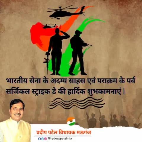 भारतीय सेना के अदम्य साहस एवं पराक्रम के पर्व सर्जिकल स्ट्राइक डे की हार्दिक शुभकामनाएं l #sarjikalstrike #indianarmychallenge