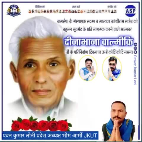 बामसेफ के संस्थापक सदस्य मान्यवर साहब कांशीराम जी के सहयोगी मा. दीनाभाना वाल्मीकि जी के परिनिर्वाण दिवस पर उन्हें नमन