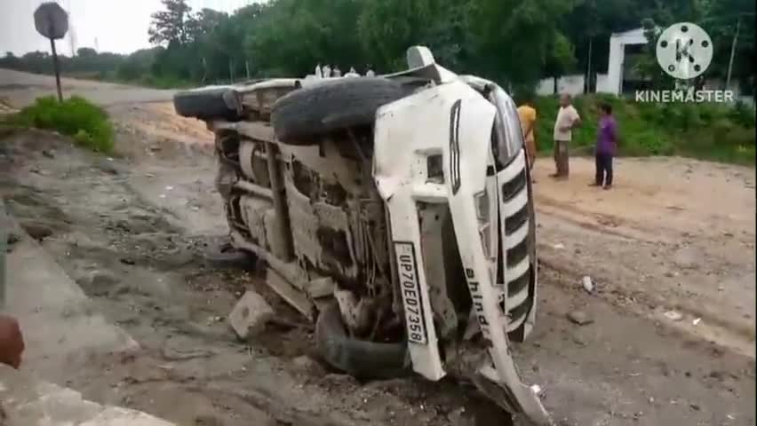 आमस थाना क्षेत्र के हमजापुर कोर्ट के सामने जीटी रोड के किनारे एक स्कॉर्पियो रविवार के अहले सुबह 4:00 बजे पलटा