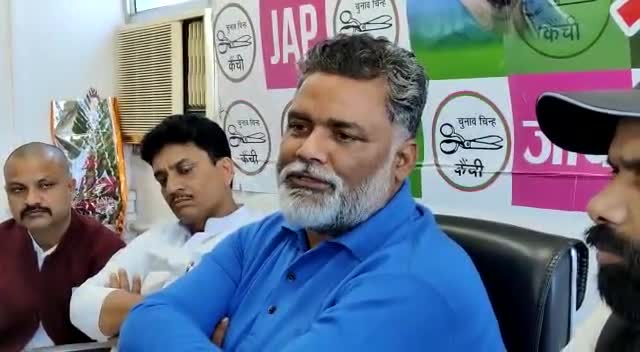पटना पार्टी कार्यालय पर जमिन और बालू माफिया के खिलाफ प्रेस कॉन्फ्रेंस करते जाप सुप्रीमो पप्पू यादव जी ।