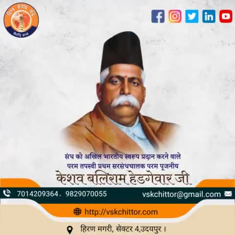 अपना सम्पूर्ण जीवन राष्ट्र की सेवा में समर्पित करने वाले राष्ट्रीय स्वयंसेवक संघ के संस्थापक परम पूज्य डॉ. केशवराव बलिराम हेडगेवार जी की जयंती पर उन्हें कोटि कोटि वंदन।।