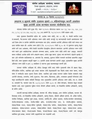 अपहरण व खुनाचे घेण्यात 05 महिन्यापासून फरारी असलेला मुख्य आरोपी अटक करण्यात पोलिसांना यश.