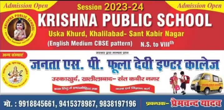 #Admission_Open_Session_2023_24 #KRISHNA_PUBLIC_SCHOOL #USKA_KHURD_KHALILABAD_SKNAGAR #PRINCIPAL__PREM_CHAND_YADAV